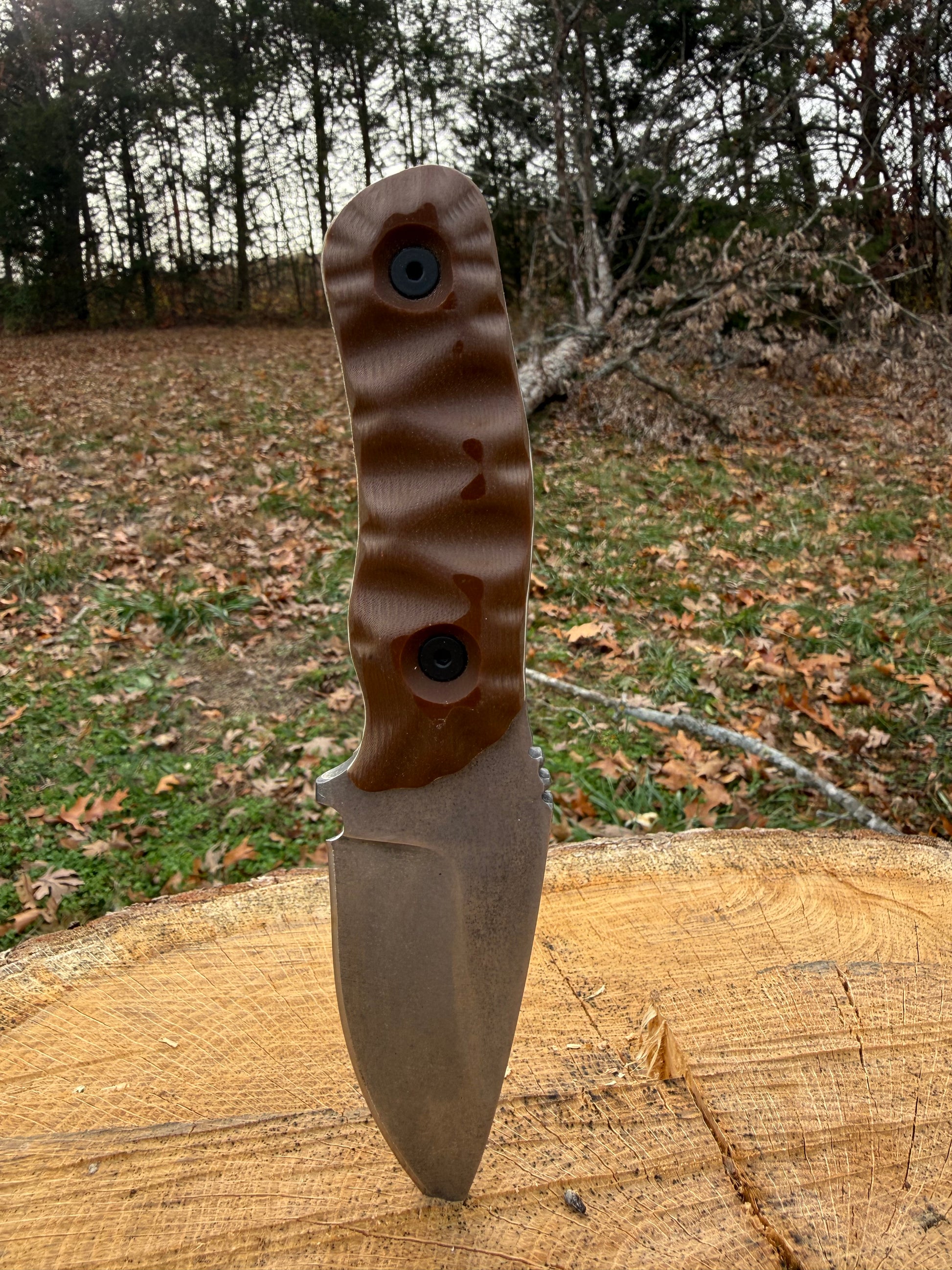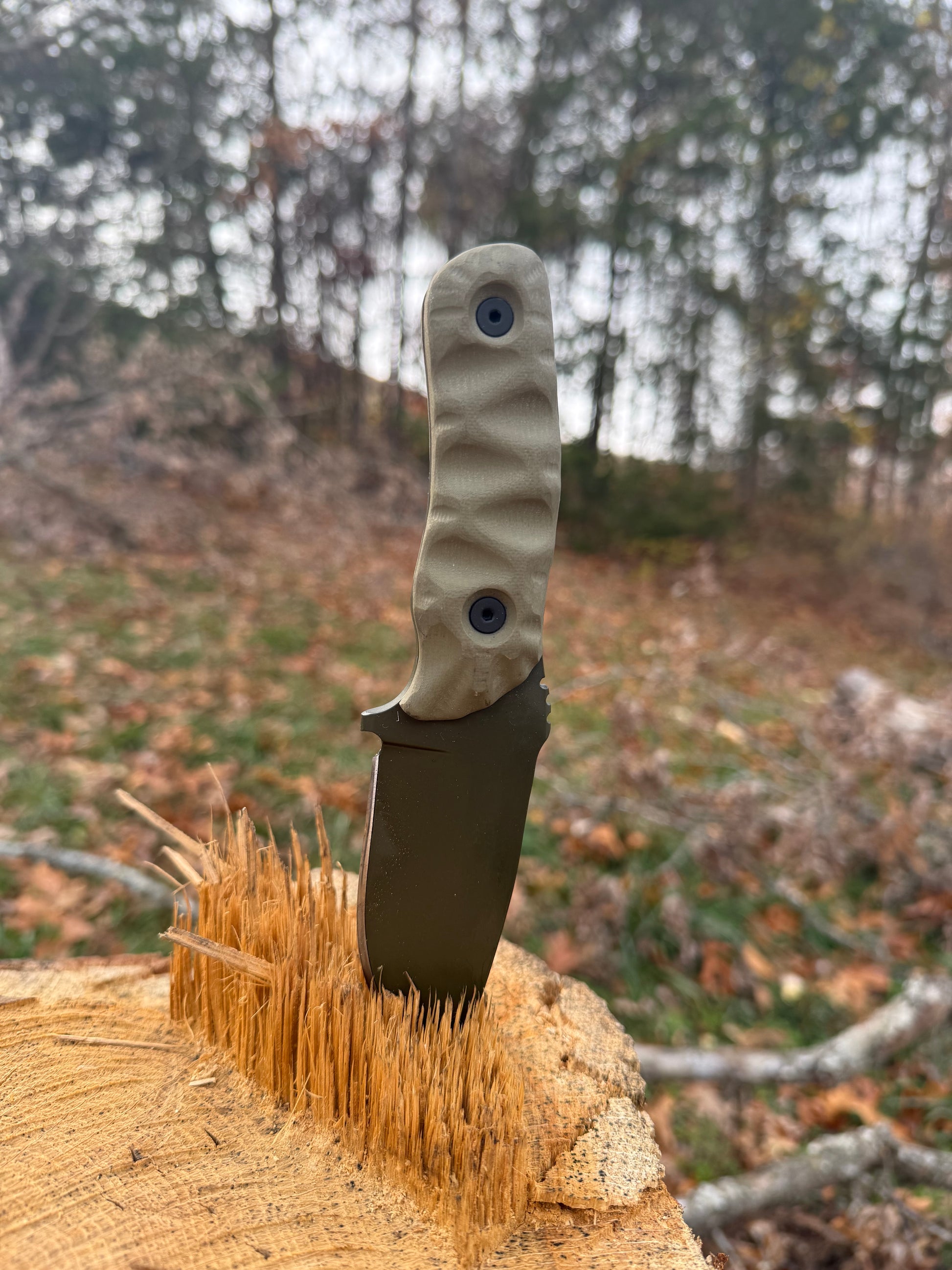 OD Green, G10 handle, 1095 high carbon American steel blade.